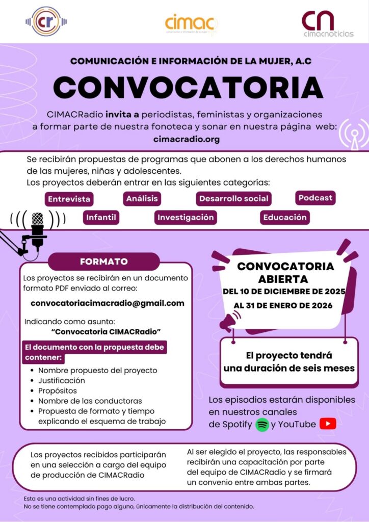 CIMACRadio invita a periodistas, feministas y organizaciones a formar parte de nuestra fonoteca y sonar en nuestra página web: cimacradio.org